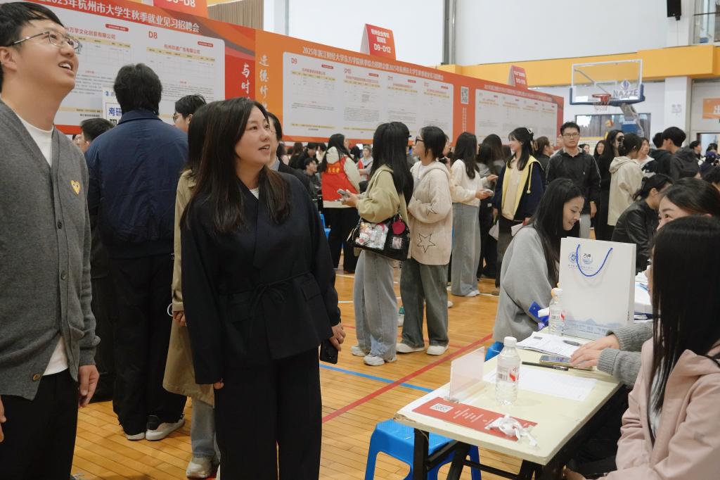 10月27日,学院秋季综合招聘会暨2025年杭州市大学生秋季就业见习招聘会在学院体育馆举行。学院党委书记申屠莉,学工部相关负责人到招聘会现场看望慰问用人单位代表,了解用人需求,并指导2026届毕业生就业工作。