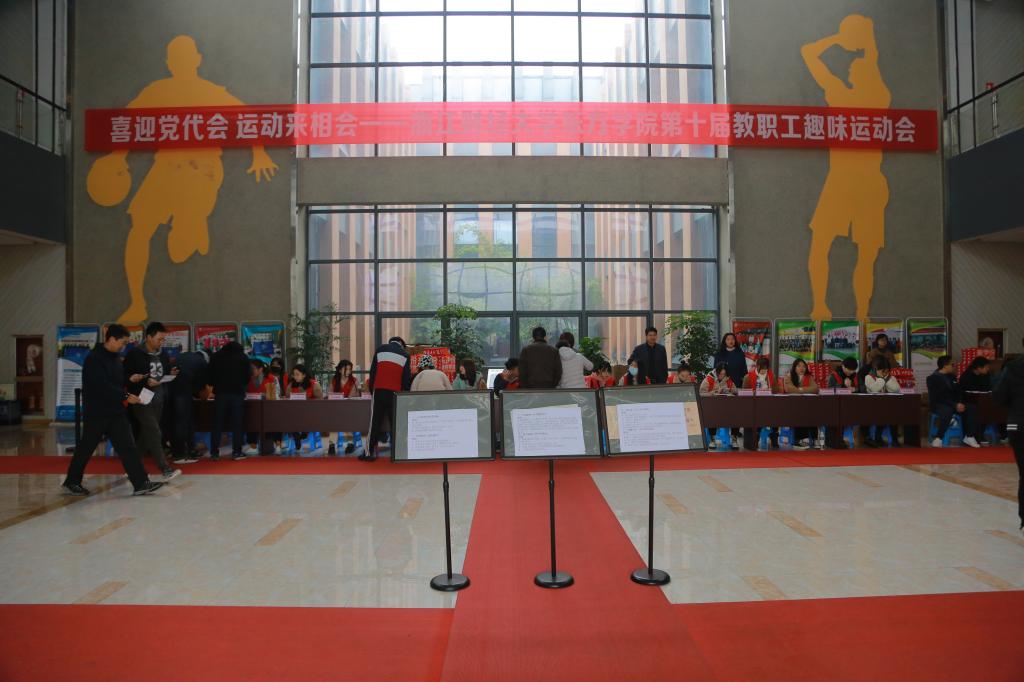 我院第十届教职工趣味运动会圆满结束 时间:2020-11-26来源:党院办 11月24日,学院第十届教职工趣味运动会在体育馆顺利举行。本次活动由学院工会主办,体育部承办。 趣味运动会共有6个项目:定点投篮、弹球掷准、不倒森林、隔空取物、心心相印和弯腰过杆。学院领导和广大教职工踊跃参加,感受到健身的快乐,同时还增强了团队意识。 本次运动会是在学院举办“强健身心 活力东方”主题月系列活动,迎接学校第二次党代会背景下举行的一次全院性教职工活动,帮助教职工工作之余放松身心,增强体质,喜迎党代会的召开。(文:通讯员 王海兵/摄:学生记者 徐元宵、郑璐、陈萍萍) 上一篇:马雪英副院长应邀出席2020海宁文旅产业(上海)招商推介会 下一篇:我院组织观看《习近平总书记教育重要论述讲义》使用培训视频会议 【关闭】