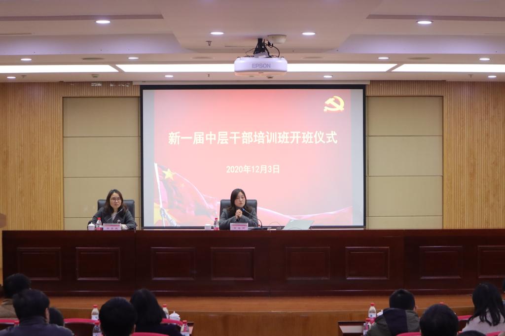 12月3日,我院新一届中层干部培训班开班仪式暨第一讲培训在学术一报举行。学院领导班子成员,全体中层干部,共计60余人参加本次培训。培训由学院党委副书记林香娥主持。