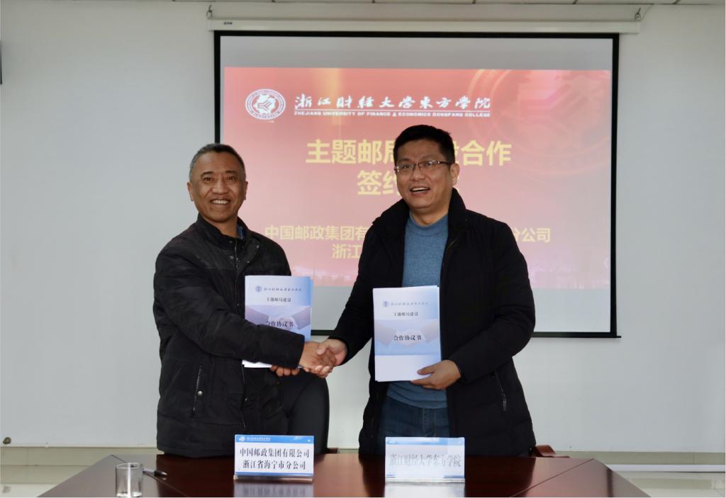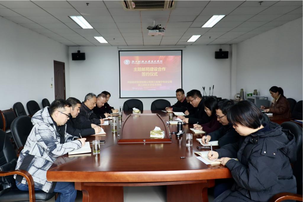 12月24日,学院与中国邮政集团有限公司浙江省海宁市分公司“主题邮局建设合作项目”签约仪式在行政楼315会议室举行。学院副院长金国锋,中国邮政海宁市分公司副总经理刘盛华出席会议。后勤基建部等相关部门负责人参加会议。