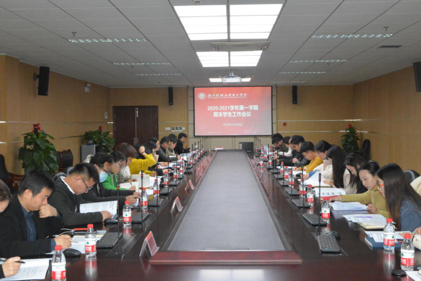 12月29日,我院2020-2021学年第一学期期末学生工作会议在行政楼A216会议室召开。各二级学院分管学生工作领导、学办主任,学生工作部、团委负责人及相关工作人员参会。会议由学院党委副书记吴翼泽主持。