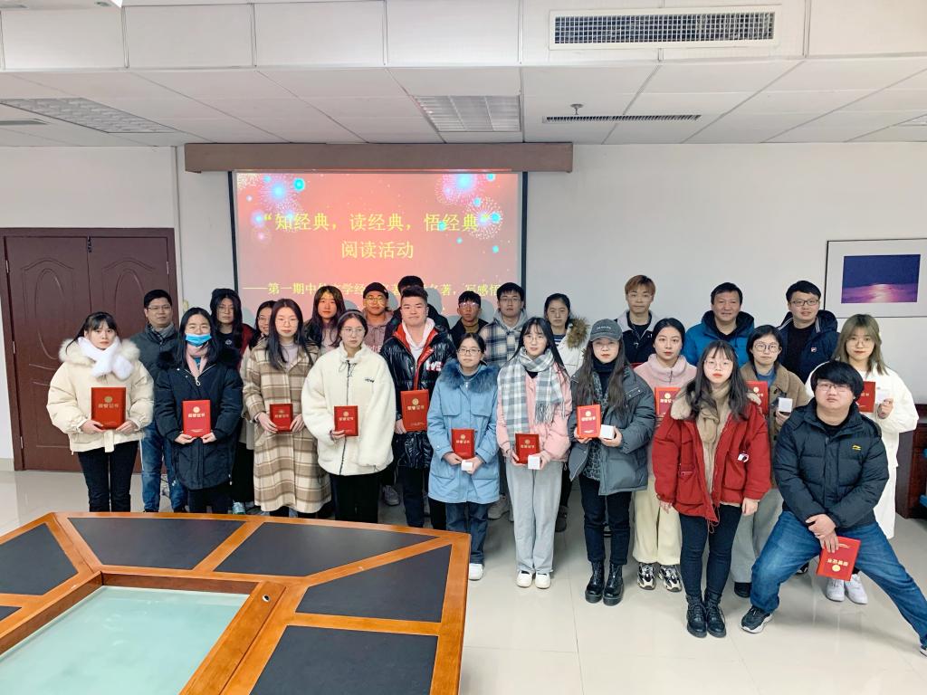 1月11日,学院“知经典,读经典,悟经典”阅读推广活动——第一期中外文学经典名著“读名著,写感悟”征文颁奖仪式在图书馆7楼会议室举行。学院副院长黄志岭,图书馆、团委相关部门负责人和30名获奖学生出席了颁奖仪式。