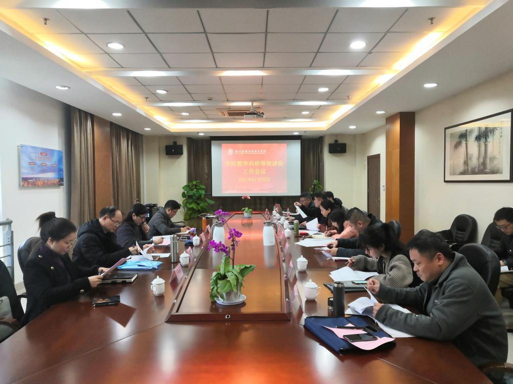 1月22日,学院在行政楼A602召开教学科研等效评价工作会议。院长叶东惠,副院长蒋钰明,科技管理部、人力资源部、教务管理部、社会合作部、学生工作部、团委、创业学院、体育部、实验室建设管理办公室负责人参加了会议。会议由副院长黄志岭主持。