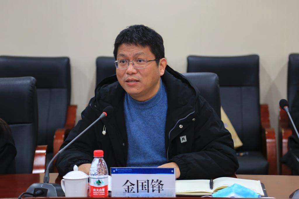 金国锋就学院疫情防控基本情况、寒假期间疫情防控工作安排和开学准备工作情况等作了详细汇报。