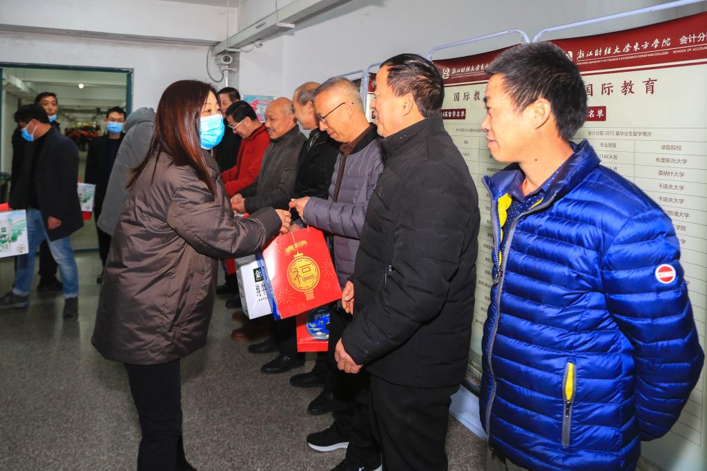 1月28日,学院党委书记申屠莉、副院长金国锋走访慰问寒假期间坚守在工作岗位上的教职工,并送上新春祝福。