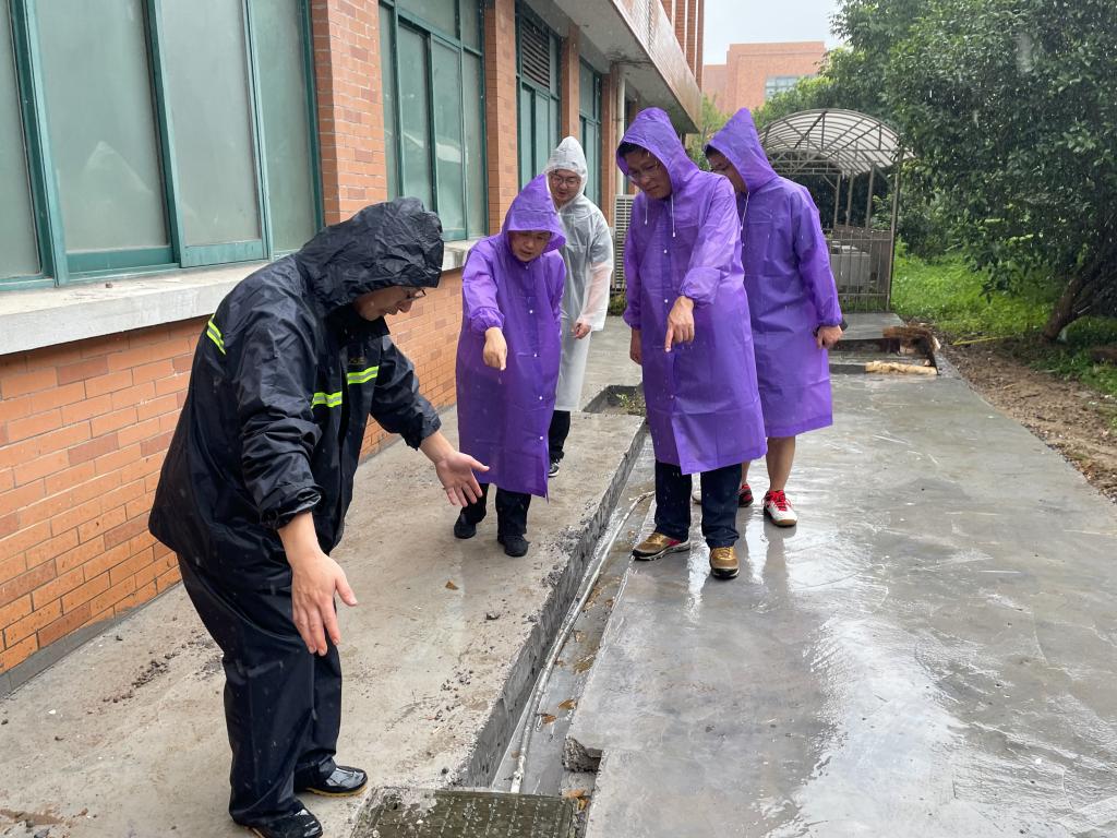 25日上午,院长叶东惠、党委副书记吴翼泽、副院长金国锋带队进行全校防台防汛工作全面大排查,检查影剧院、体育馆、实验楼、教学楼、学生食堂、宿舍、图书馆、配电间、地下车库、楼宇屋顶、景行湖等重点领域环节,看望一线防台工作人员并具体指导防台防汛工作。