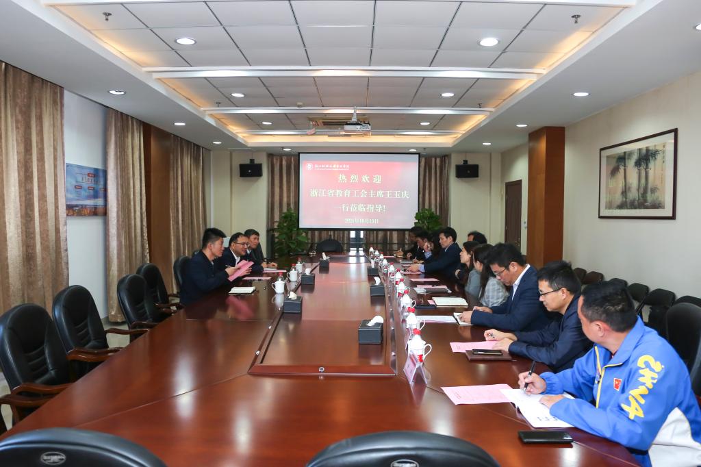 10月19日,浙江省总工会二级巡视员、浙江省教育工会主席王玉庆一行来学院调研指导浙江省“钟声杯”羽毛球比赛暨“校长杯”羽毛球比赛筹备情况。省教育工会财务和钟声体协负责人葛海平、省教育工会青年工作负责人姚晓龙陪同。校党委副书记黄建新、校工会常务副主席李训茂、东方学院院长叶东惠、副书记林香娥、副院长金国锋出席会议。会议由学院党委书记申屠莉主持。