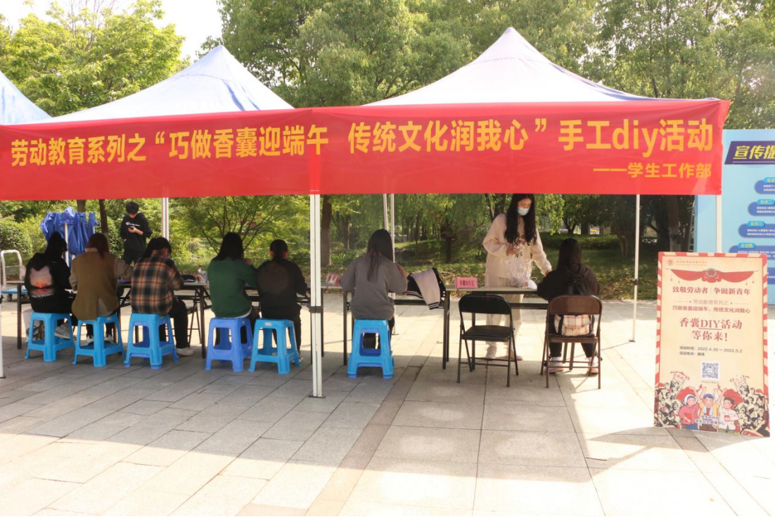 信息学院19信管专业的郑涛感慨道:“在现场学习了一下做香囊,感受到了传统手艺的精妙和浓厚的节日气氛,让这个劳动节变得更有意义。”