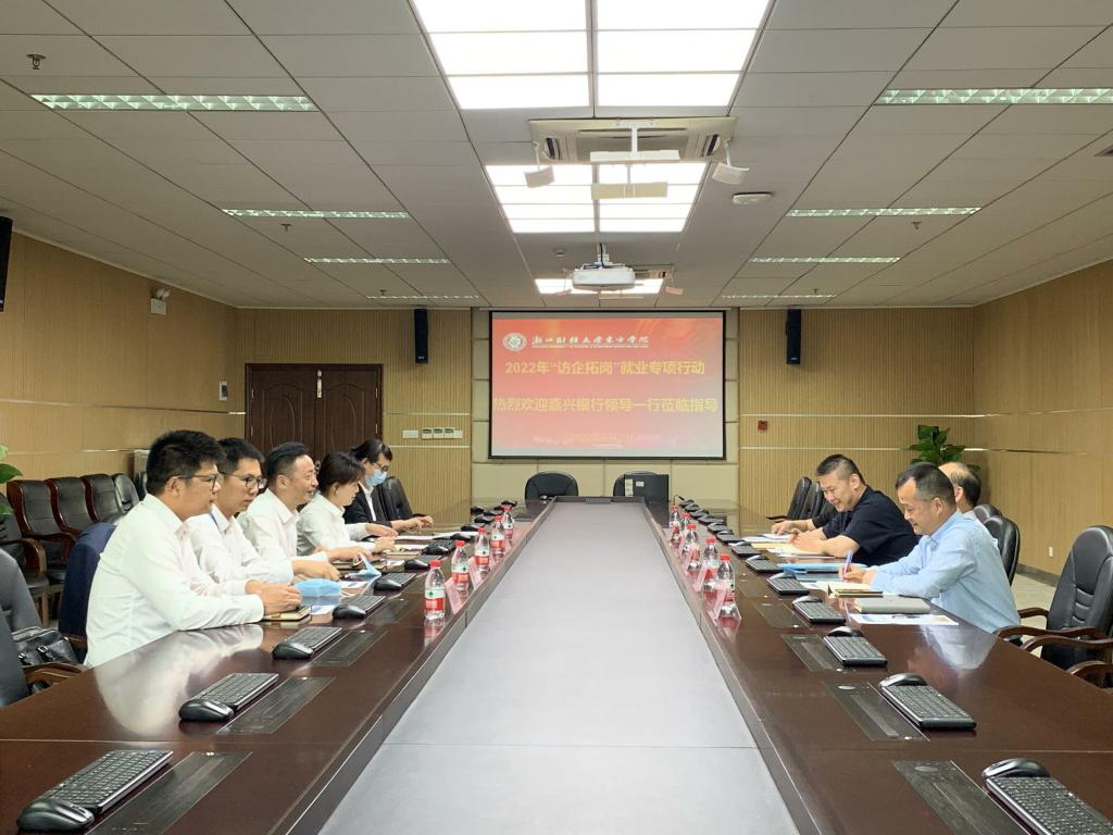 5月23日,嘉兴银行行长助理江逸民一行来学院调研交流,学院副院长蒋钰明,学生工作部、社会合作部负责人参加。