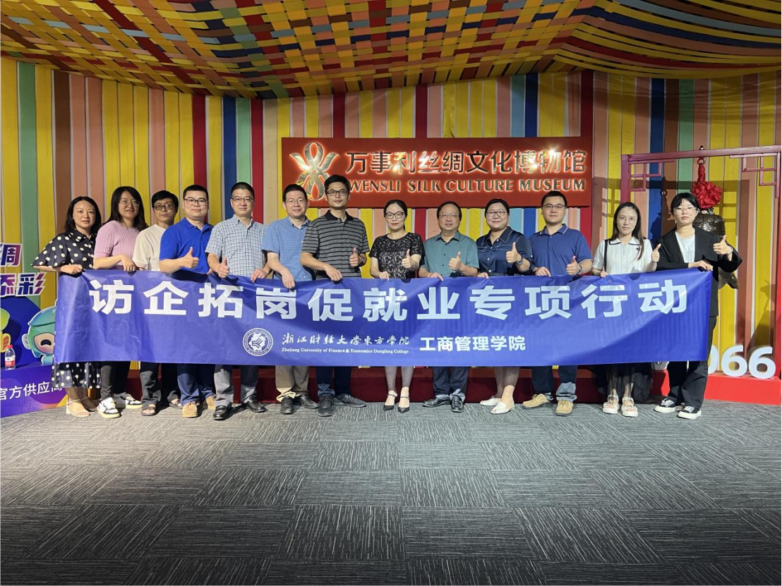 6月24日,学院党委副书记吴翼泽带队赴杭州万事利丝绸文化股份有限公司考察交流,受到万事利总经理助理沈小华、管理中心副总监唐婵娟、营销中心销售总监付泽伟等一行人员的热情接待。
