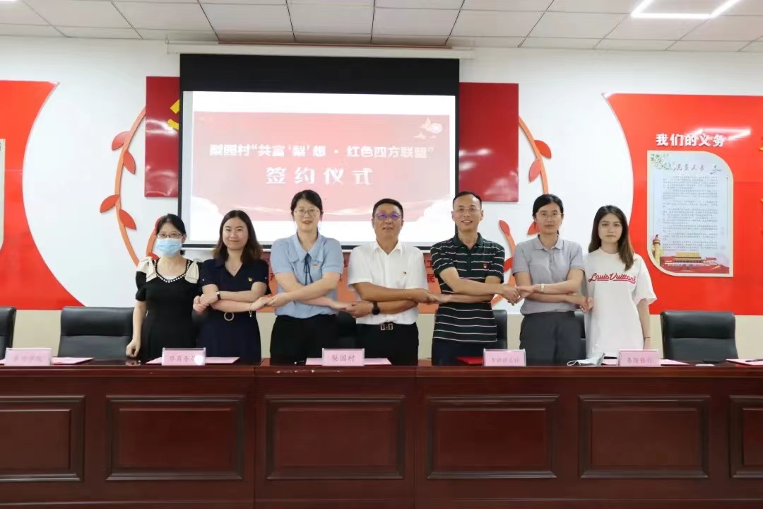 6月21日上午,学院与斜桥镇斜桥社区举行共建签约仪式暨文化传播与设计学院采风出征仪式。校社深入合作,共建党建与思政教育基地、文化传播与设计学院现代社区服务站,共同打造“党建+文旅”项目品牌。6月30日下午,学院作为联盟成员参加袁花镇梨园村“共富‘梨’想·红色四方联盟”成立仪式。梨园村党委等6家联盟成员单位集中签约,并就如何实施共建计划开展座谈交流。学院将进一步深化党建结对共建事宜,通过大学生暑期实践、开展新思想传播等发挥人才优势,推动党建资源共享、经济发展共谋、文化活动共办、中心工作共推、实事好事共办,实现党建资源共享、优势互补、人才共育、协调发展,打造校企地党建共同体,凝聚强大发展合力。