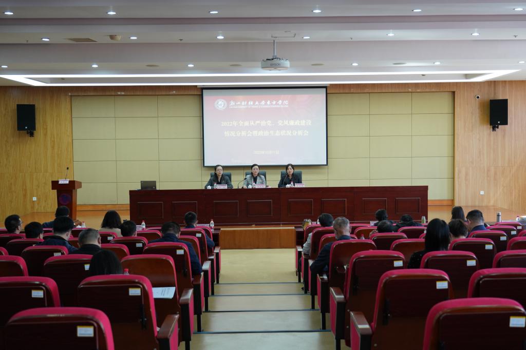 10月11日,学院召开2022年全面从严治党、党风廉政建设情况分析会暨政治生态状况分析会。学院领导班子成员叶东惠、申屠莉、马雪英、方咏、林香娥、金国锋、蒋钰明、黄志岭,学院纪委委员,各职能部门负责人,各二级学院院长、书记等参加会议。会议由学院党委书记申屠莉主持。