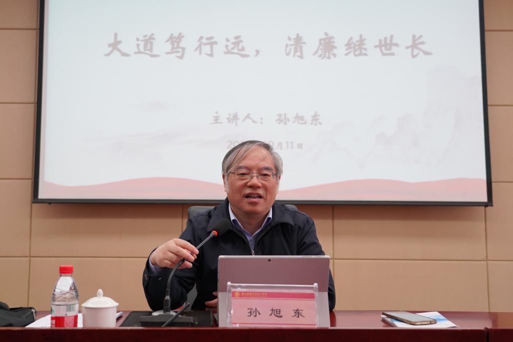 孙旭东从十八大以来以习近平同志为核心的党中央对持之以恒正风肃纪作出新部署、提出新要求谈起,通过十八大以来全面从严治党、党风廉政建设成效卓著,反腐败斗争形势依然严峻复杂、全面从严治党依然任重道远,聚焦“四清”目标、推动清廉浙江建设三方面诠释了“大道笃行远,清廉继世长”的深刻内涵。