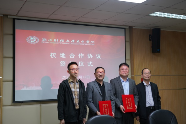 10月12日,学院与海宁市周王庙商会在行政楼A216举行校地合作签约仪式。学院副院长蒋钰明,周王庙镇党委副书记谢晓峰,周王庙商会会长沈自洪及商会副会长、秘书长,社会合作部负责人,学生工作部、各二级学院、创业学院分管校地合作工作领导等共同参加了签约仪式。