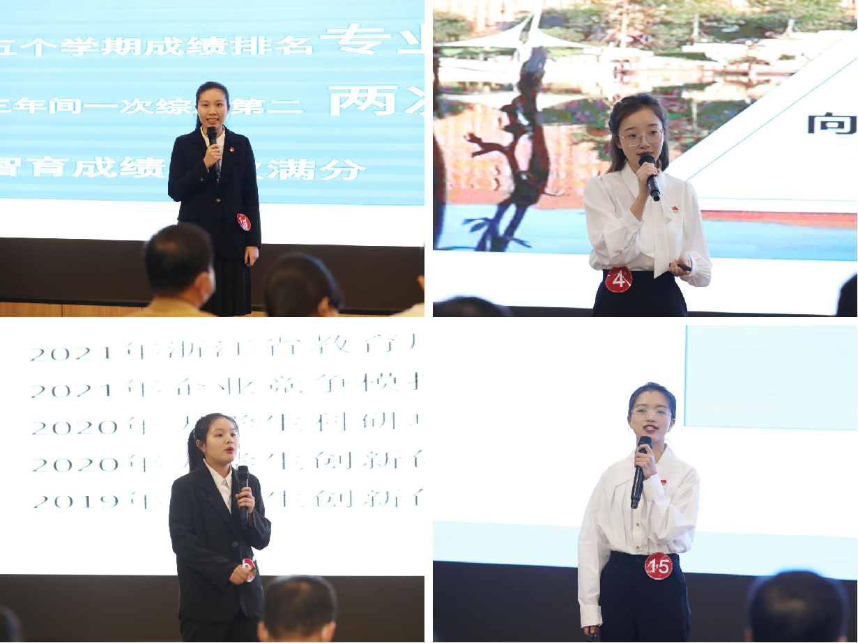 经各二级学院初评推荐的15位候选人,就思想道德、专业学习、任职经历、创新创业、社会实践等各方面的表现进行了提纲挈领而充分翔实的汇报展示:她们有的在体育竞场上挥洒热血,赤心如虹,填补东方体竞空白;她们有的曾担任防疫志愿者,敬佑生命、甘于奉献,为抗疫献出一份力量;她们有的积极参与各类竞赛,踔厉奋发、勇攀高峰,在创新竞赛和商赛中取得佳绩;她们有的走出舒适圈,砥砺深耕,设计文创产品,在国际大赛中展示东方风采……她们不断发扬“顺潮、迎潮、弄潮、领潮”的逐浪精神,在拼搏中奋勇前进,争取用国奖这份殊荣来回报自己走过的拼搏岁月。评审会现场掌声雷动。