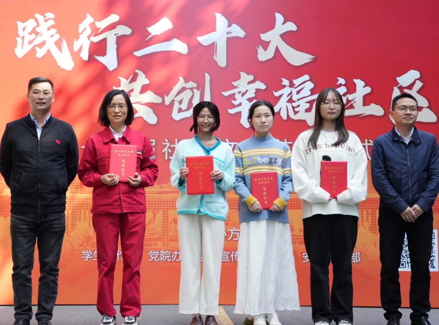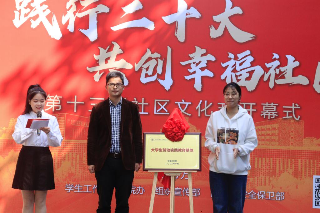开幕式上,吴翼泽和学生代表为学生社区劳动教育基地进行揭牌,相关职能部门负责人分别为最美寝室长代表、最美阿姨代表颁奖,为“流动图书角”赠书学生代表颁发捐赠证书。