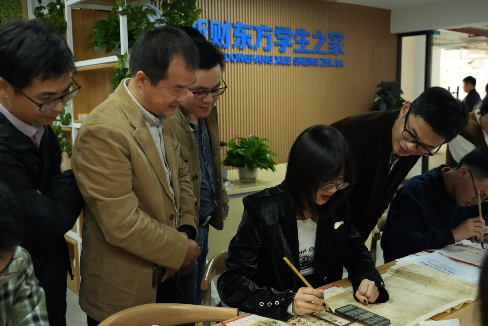 仪式结束后,现场师生前往学生之家共同参与“东方手艺人小课堂”和“践行二十大翰墨展风采”书法活动。