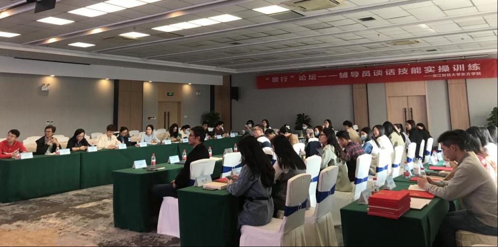 11月2日,学院“景行”论坛特邀浙江工商大学心理健康教育中心主任郭洪芹作辅导员谈心谈话实操培训。学生工作部、院团委相关负责人及全体成员、各二级学院分管学生工作书记(或副书记)及全体辅导员参加了培训,培训由学院党委副书记吴翼泽主持。