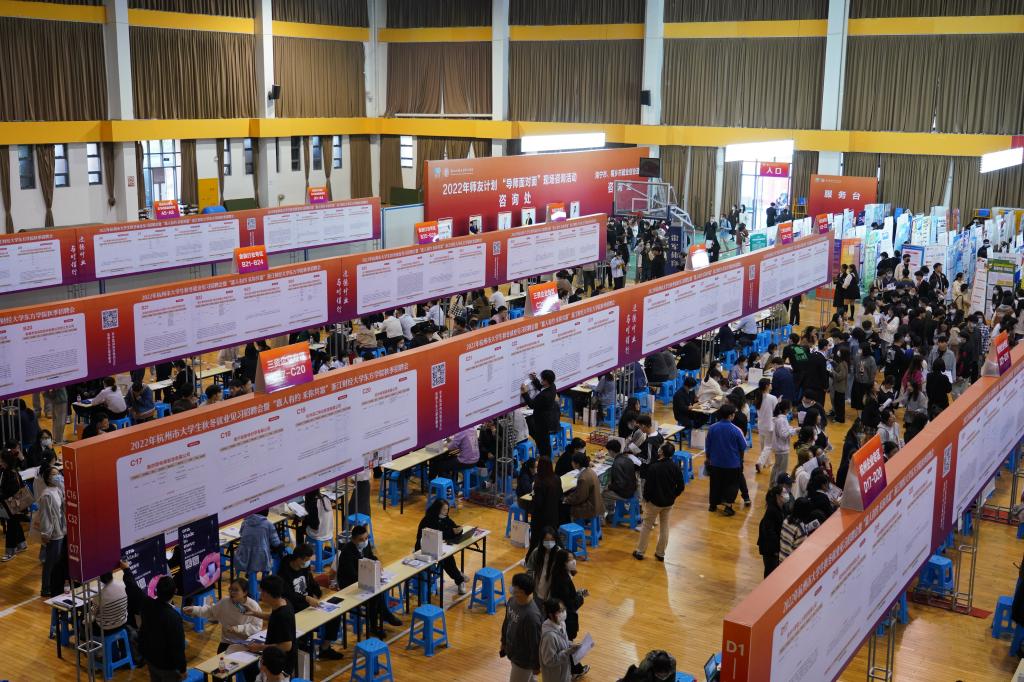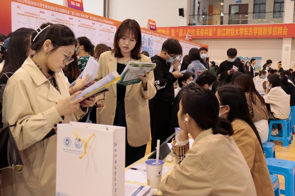 本次招聘会共设置企业展位301个,其中校友企业展位23个,提供岗位数达1000余个,用人需求超7000人,招聘岗位的需求专业基本覆盖学院所有专业。为更好的服务毕业生就业,方便求职应聘学生锁定目标,本次招聘会依据单位所在地、行业、性质等专门设置了杭州大学生见习训练基地专区、校友企业专区、金融行业专区、国有企业专区、三资企业专区、杭州企业专区、嘉兴企业专区、海宁企业专区、桐乡企业专区、宁波企业专区、绍兴企业专区、金华企业专区、省内其他地区企业专区和省外企业专区等14个大区,囊括了绿城、滨江等大型房地产行业集团和宁波银行、泰隆银行、大地保险、招商证券等大型金融行业公司,以及物产中大、浙商食品、联华华商等国有企业。招聘会现场共有2500余名毕业生求职应聘,投递简历超2500份,1000余人和企业初步达成就业意向。
