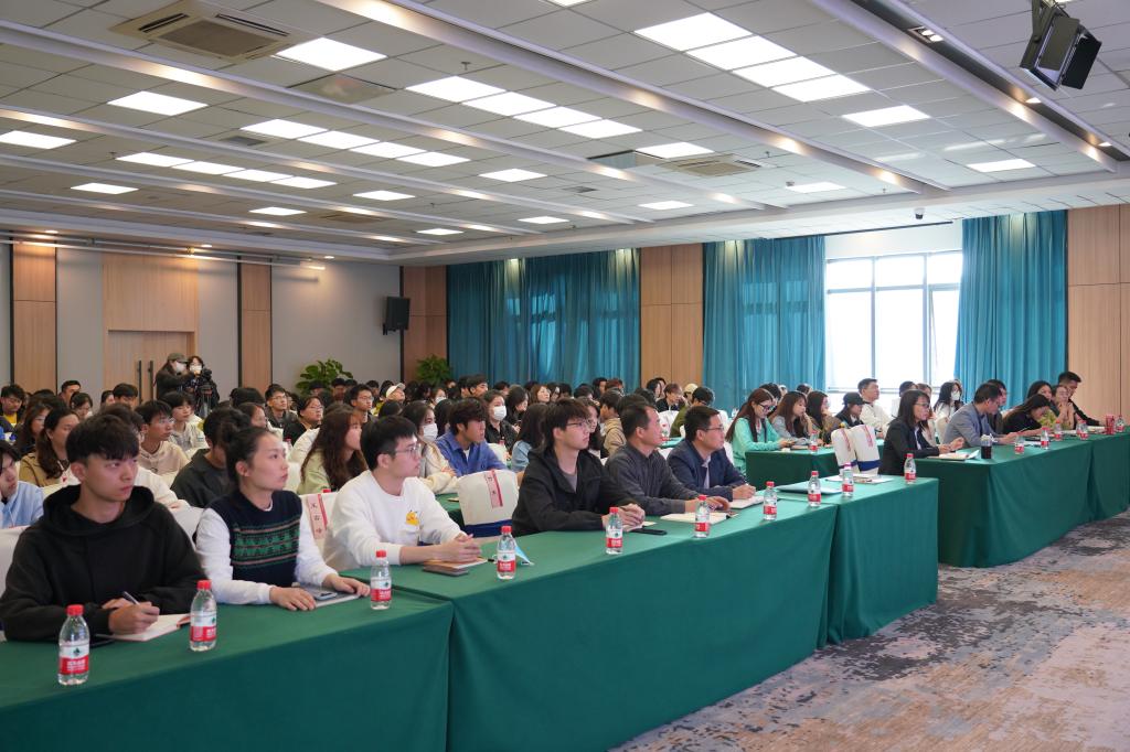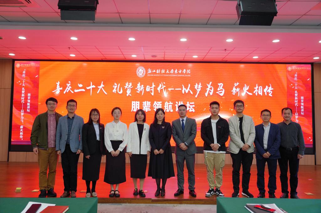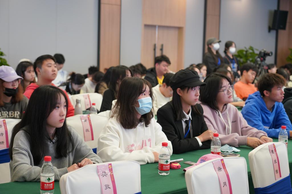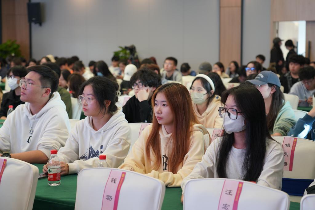 在朋辈领航讲坛活动上,两位优秀校友和两位在校生共同分享了他们的学习、工作经历。2010届工商管理学院校友,杭州选哲科技有限公司合伙人、副总经理詹敏娟用“逐字稿”的形式向同学们讲述了如何拒绝内卷,搭好自己的梯子。她解释了“内卷”的含义,并告诉同学们要敢于“摘果子”,经营土地多施肥,“搭好属于自己的梯子”,找到属于自己的优势。2015届信息学院校友、泰隆银行钱塘支行行长蒋生火从“后疫情时代如何寻找出最适合自身的工作”“如何形成自身差异化的核心竞争力”“不要过早给自己下定义”等三方面进行了经验分享,介绍了钱塘支行成为一家创新型网点的发展历程,鼓励同学们勇于突破、勇于创造。20法学1班汪宏源总结了军旅和返校生活所带来的人生感悟,不仅提高了身体素质、养成不怕苦不怕累品质,更学会了为人处世的方法,我们要有干劲、有冲劲,发挥好带头作用。19经济1班柯雨佳是国家奖学金、省政府奖学金获得者,连续三年获得一等奖学金。她向同学们分享了大学生活和经验,希望广大同学要找到适合自己的学习方法,坚持做好自己的规划。不要将自己关在象牙塔里,多出去看看,多了解时事,多为社会做力所能及的事,努力地散发出自己的光芒。(文:黄曾帆/摄:王周娈)