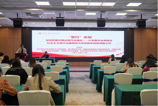 为深入学习贯彻党的二十大精神,把坚定拥护“两个确立”,坚决做到“两个维护”化为思想自觉和行动自觉,准确把握思想政治工作面临的新形势、新任务、新要求,激励我院思政工作者踔厉奋发、勇毅前行,11月10日,学院特邀浙江财经大学马克思主义学院教授、硕士研究生导师华正学作“学习贯彻党的二十大精神”景行论坛讲座。组织宣传部、学生工作部、院团委相关负责人及全体成员、各二级学院分管学生工作书记(或副书记)及全体辅导员,学院党校教师参加了会议,会议由学院党委副书记吴翼泽主持。