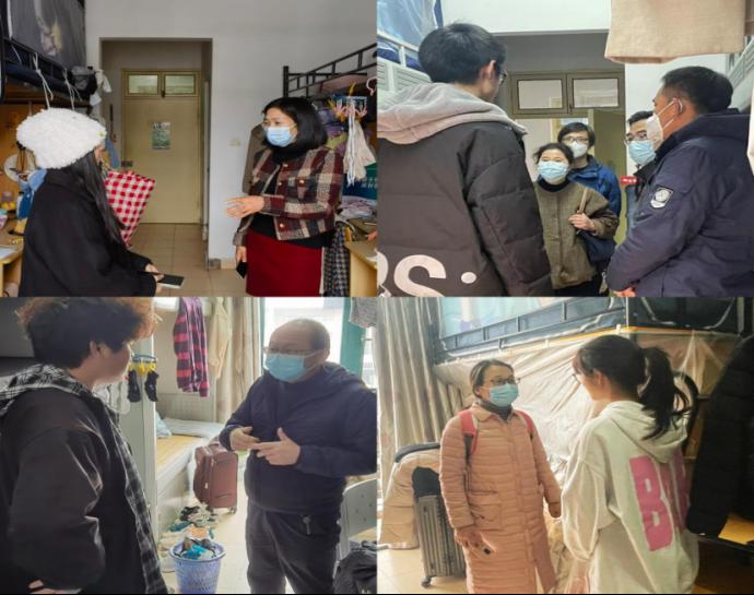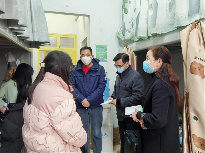 一声声亲切问候,一句句细心叮嘱,关怀细致入微。学院领导在宿舍中与同学们亲切交谈,了解线上课程学习状态、返乡安排、寒假规划等。同时,叶东惠叮嘱同学们要做好个人健康防护工作,强化安全意识和自我保护意识,外出时科学佩戴口罩,加强身体锻炼,树立青春活力的大学生形象。