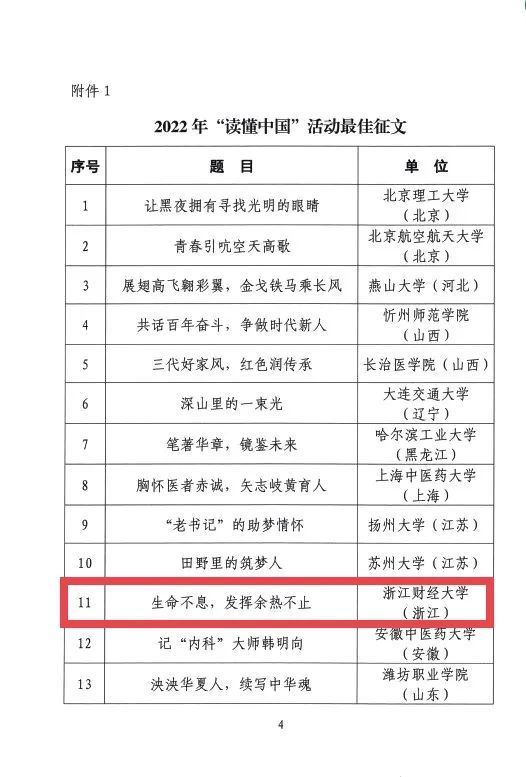 近日,教育部公布2022年“读懂中国”活动入选作品名单,由信息学院党总支选送的征文《生命不息,发挥余热不止》荣获最佳征文奖,是全省唯一获奖作品。