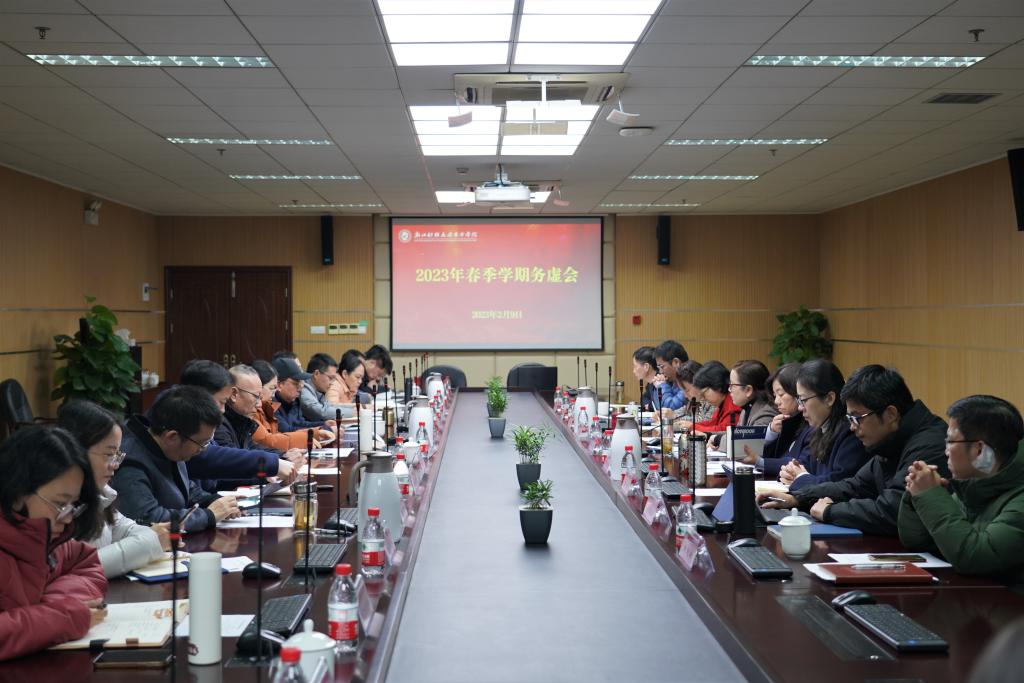 2月9日,学院召开2023年年初务虚会。会议深入学习贯彻习近平新时代中国特色社会主义思想,全面贯彻党的二十大精神和省第十五次党代会、省委十五届二次全会部署,全面分析全省高等教育发展的新形势新任务,聚焦学院办学水平和人才培养质量提升,科学研判学院事业发展面临的新机遇和新挑战,认真谋划新思路和新举措。学院领导班子成员,相关职能部门负责人和二级学院院长参加会议。会议由院长叶东惠主持。