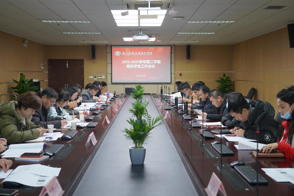 2月28日,学院召开2022-2023学年第二学期期初学生工作会议。相关职能部门负责人,各二级学院分管学生工作书记、学办主任及学工部、团委全体工作人员参会。会议由学院党委副书记吴翼泽主持。