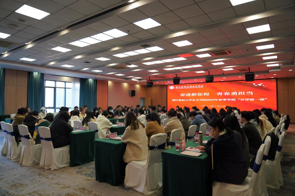 律回春晖渐,万象始更新。3月6日,学院在行政楼B301举办了2023年春季学期“开学第一课”。学院党委副书记吴翼泽、副院长金国锋,党院办、组织宣传部、教务管理部、学生工作部、院团委、信息技术部负责人,辅导员代表,学生代表参加活动。活动由学院党委书记申屠莉主持。