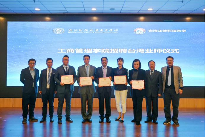 工商管理学院负责人为台湾正修科技大学杨仲纬、陈丽云、王耀德、李盈达、蔡蕙好颁发工商管理学院业师聘用证书。