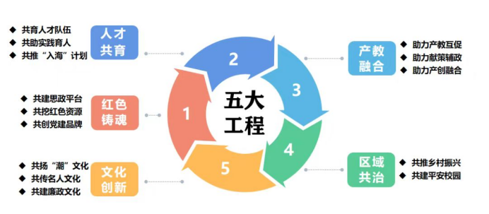 近年来,学院始终坚持党建统领下校企地的全方位、多领域、深层次合作,融入“立德”根本,聚焦“树人”关键,立足“地方”特色,以“打造党建共建新平台、拓展人才共育新阵地、共筑精神共富新高地”为目标,形成了“红色铸魂、人才共育、产教融合、区域共治、文化创新”等五大共建路径,构建起“资源共享、优势互补、双向共赢”的党建工作新格局。