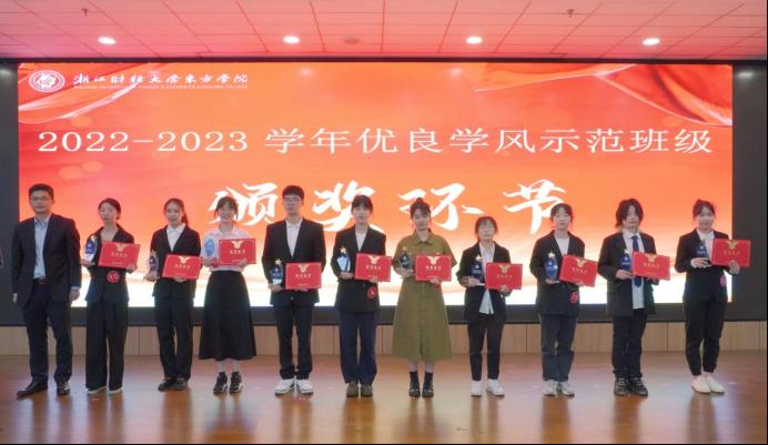 学院党委副书记吴翼泽为2022-2023学年优良学风示范班级颁奖。