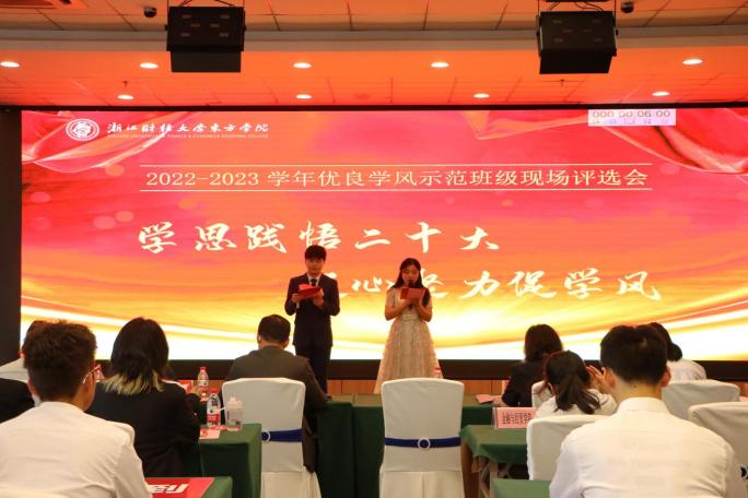 经各二级学院初评推荐的十五个候选班级,就思想建设、组织建设、学风建设、文明建设等各方面对班级进行了整体介绍,同时重点展示了班级学风建设亮点工作、机制及成果:有的班级加强“火车头”建设,评选“热爱生活,只为学习”的班级学习标兵,带动整体学习积极性;有的班级首创班委对接帮扶制度,班委以“不让任何一个人掉队”的精神投身班级建设,凝聚出团结共进的班风;有的班级“以赛代学,以考代练”,全班积极参与各类竞赛活动,获得国家级、省级和院级各类奖项,班级成员根据职业规划进行考证且维持较高的成功率;也有班级深耕班级精神风貌,做到了学风和思想建设两不误……各班对优良班级风貌的精彩展示,博得了在场师生的阵阵掌声。