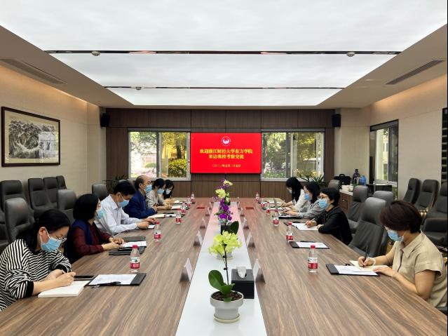 马雪英对宁波财经学院的热情接待表示感谢,并介绍了东方学院新文科建设规划、一流本科专业和一流本科课程建设举措以及思政课程改革经验等方面的相关建设情况。