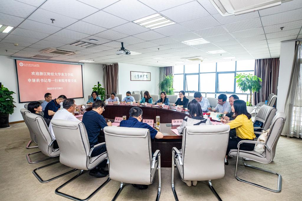 为深入开展学习贯彻习近平新时代中国特色社会主义思想主题教育,5月26日,学院党委书记申屠莉带队,纪委书记方咏、党委副书记林香娥、吴翼泽一行赴绍兴文理学院元培学院进行调研交流,受到了绍兴文理学院元培学院院长沈红卫,党委副书记石旭明,党委副书记、纪委书记俞国芬等的热情接待。