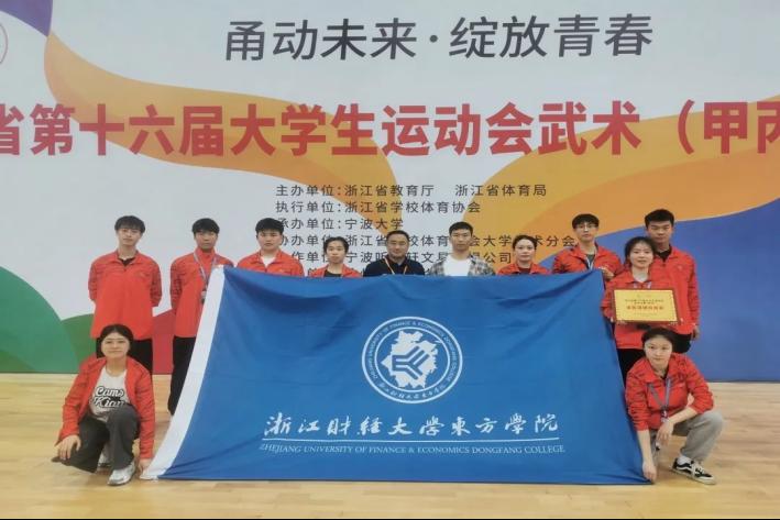 5月12日至14日,浙江省第16届大学生运动会武术套路比赛(甲丙组)在宁波大学举办。经过三天的激烈角逐,学院武术队在领队何晓芸,教练员谭金鹰的带领下,获1金、1个第四名、1个第五名、1个第六名、1个第八名的优异成绩。