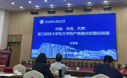 马雪英参加理事会会议,在大会上作题为《共建、共创、共育:浙江财经大学东方学院产教融合的路径探索》的主题报告,她从共建两个现代产业学院,打造育人“新基建”,共创三类实践教学基地,拓展育人“新途径”,共育四种实践应用课程,创新育人“新载体”三个方面介绍了学院产教融合的特色育人路径。