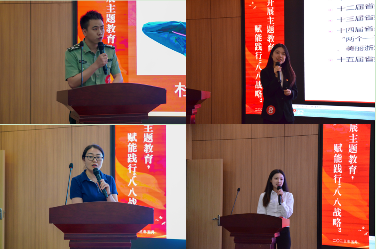 “‘八八战略’在身边”微党课大赛上,来自各党总支的16位参赛选手陆续登台,激情满怀,紧扣“八八战略”实施20周年主线,结合亚运主题宣传、共同富裕示范区建设、嘉兴撤地建市40周年和自身经历,讲“浙里山海”“嘉兴行动”“东方蓝图”,讲“奋斗”“初心”“青春”,讲“青年和城市的双向奔赴”。他们用“身边事”解读“大政策”,用“小故事”阐明“大道理”,通过生动的故事、鲜活的案例和朴实的语言,带来了一场接地气、有温度、有深度的党课盛宴,充分展现了师生党员厚植爱党爱国爱社会主义的深厚情怀,生动呈现了“八八战略”引领下师生党员昂扬向上的奋斗姿态,有力激发了广大党员奋进新时代的磅礴力量。