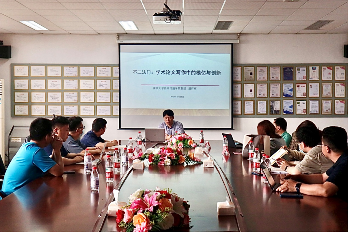 潘祥辉围绕“学术论文写作中的模仿与创新”为学院教师开展专题分享。讲座主要从论文文本的“模仿”实践、论文写作中的创新策略、学术写作中模仿与创新的关系、学术写作中模仿与创新的误区四个方面展开。他借王国维的三种境界提出论文写作有苦有乐,并结合自身研究及相关论文案例,分别从选题、观点、材料、研究方法、理论概念及表达方式等几个方面向老师们分享了丰富实用的创新策略。同时,他也为大家明确了模仿与创新中的误区,强调了模仿不是抄袭与生搬硬套,要做好创新,注重多方向与规范性。