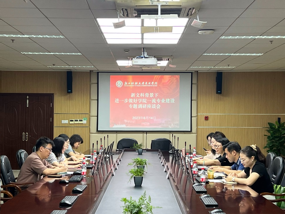 为推动学习贯彻习近平新时代中国特色社会主义思想主题教育走深走实,立足专业特色优势,梳理专业发展问题,做好统筹规划,6月14日,学院在行政楼A216会议室召开新文科背景下一流本科专业建设主题调研座谈会。学院副院长马雪英主持会议,省级一流本科专业建设点负责人、教务管理部负责人、二级学院教学院长参加座谈交流。
