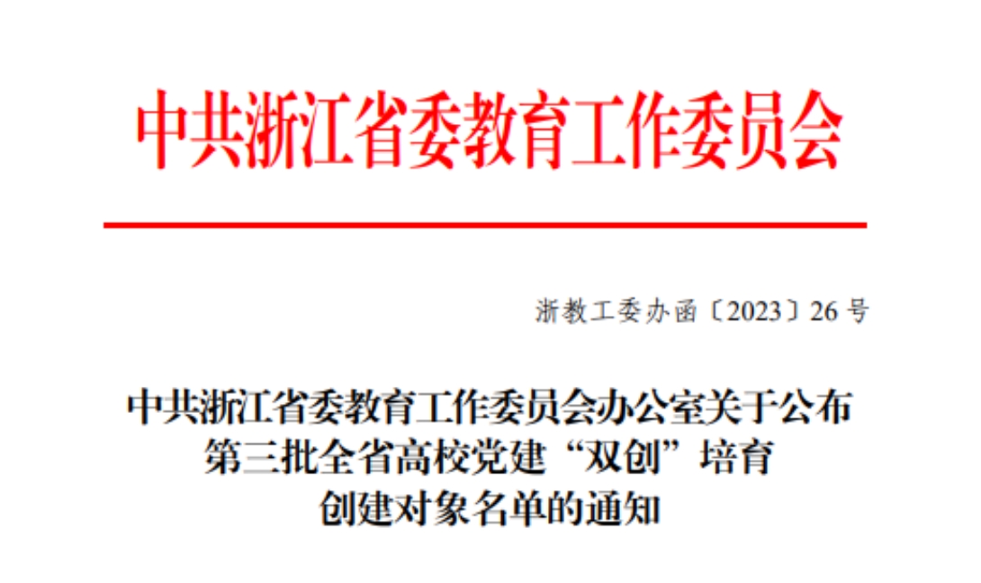 近日,浙江省委教育工委公布了第三批全省高校党建“双创”培育创建单位名单,学院推荐选送的文化传播与设计学院教工党支部入选第三批全省高校样板支部培育创建单位,学院党建工作取得突破性成果。