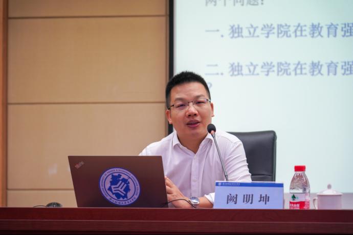 会议邀请了浙江大学博士生导师阙明坤教授作题为《教育强国视域下我国独立学院发展态势分析》的专题报告。报告深刻解读了高等教育强省暨高水平大学建设工作推进会精神,详细阐述了独立学院发展历程、现状和前景展望,对学院在新发展阶段如何蓄力赋能、深化应用型高校内涵建设,具有重要启发和指导作用。