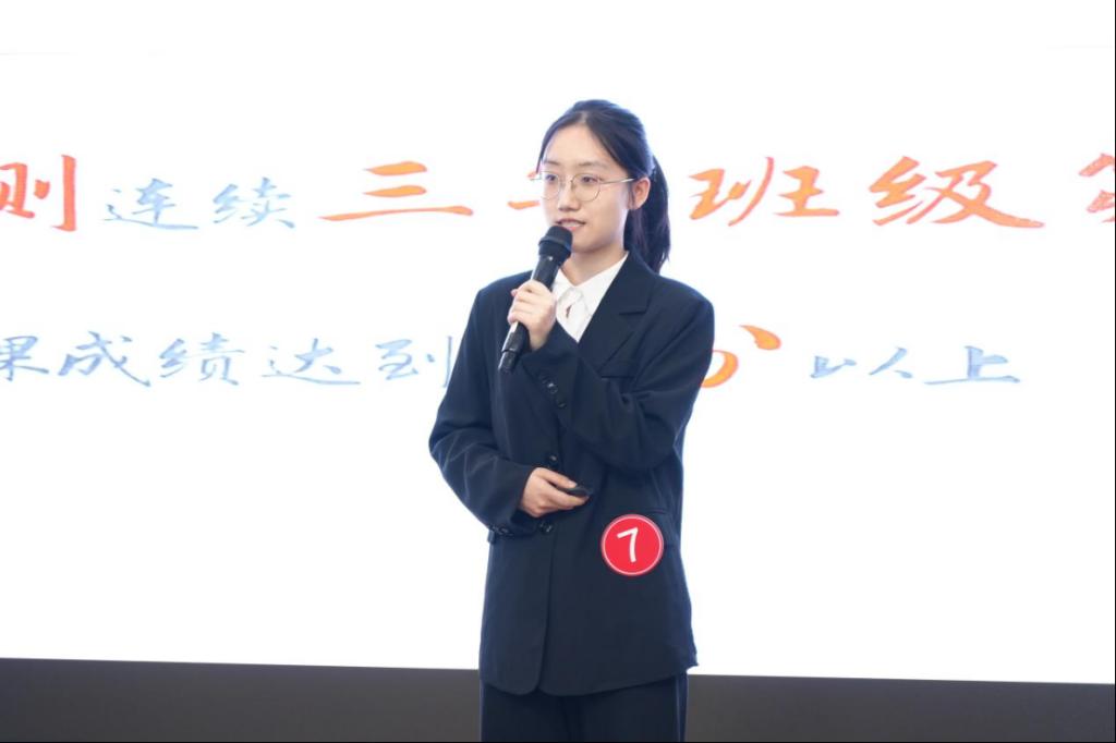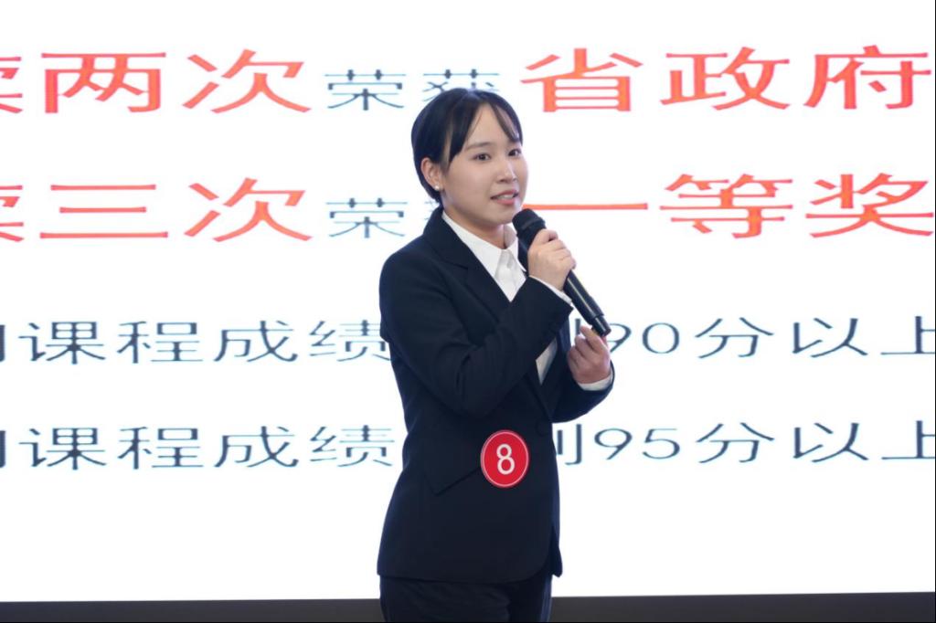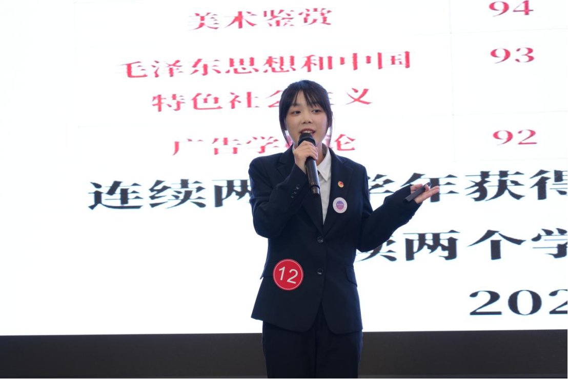 经各二级学院初评推荐的13位候选人,就思想道德、专业学习、任职经历、创新创业、社会实践等各方面的表现进行了提纲挈领而充分翔实的汇报展示:他们有的积极参与各类竞赛,提升自我,勇攀高峰;他们有的在志愿领域无私奉献,担任杭州亚运会志愿者,贴心服务,献出力量;他们有的在体育赛场上挥洒汗水,百折不挠,代表学校获得骄人成绩;他们有的走出舒适圈,打造自己的作品,在国际大赛中展示东方风采……她们不断发扬“顺潮、迎潮、弄潮、领潮”的逐浪精神,争取用国奖这份殊荣来回报自己走过的拼搏岁月。他们优良的综合素质博得在场师生的阵阵掌声。