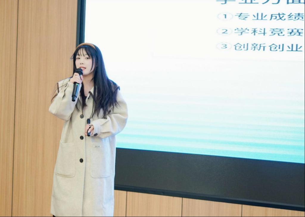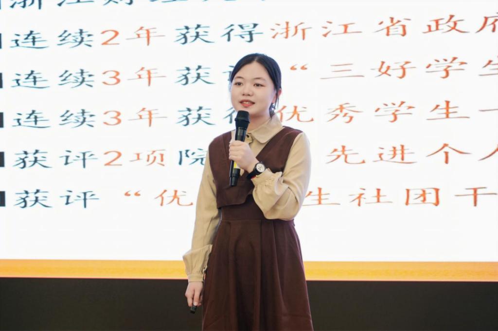 “勤奋可以赢得一切”,文化传播与设计学院21广告2班的陈佳妮同学分享了自己大学的“追光之旅”,鼓励学弟学妹通过志愿活动、学生工作等不断提升自我能力,朝着目标靠近。