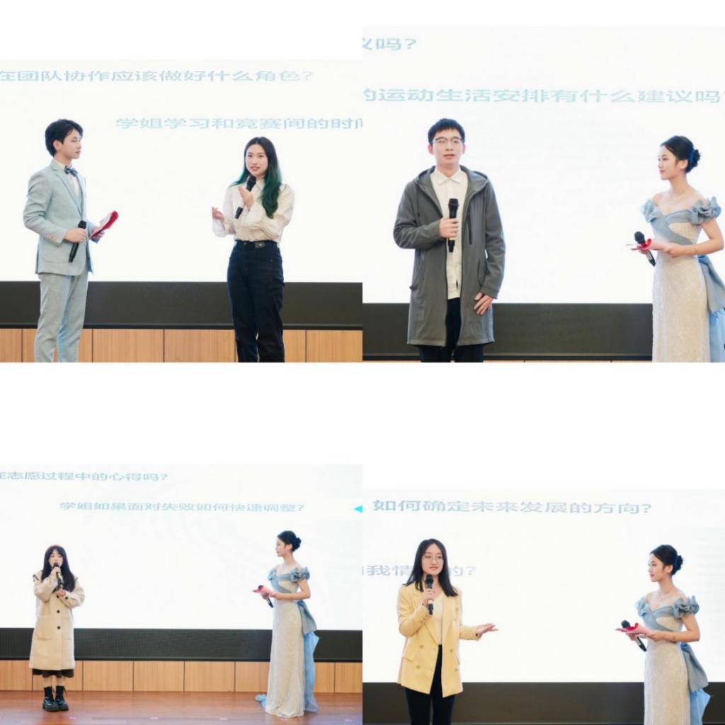 在交流互动环节,面对在场学弟学妹们提出的“如何衔接高中和大学的专业学习”如何平衡工作和学习之间的关系”“在团队协作应该做好什么角色”“面对失败如何快速调整自我情绪”“对运动生活安排的建议”等问题,十位获奖者们进行了详细解答和热情互动。
