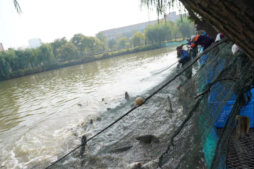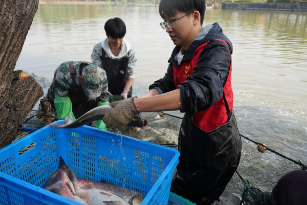据悉,后勤基建部、资产管理部将把收获的近2000斤鱼获烹饪成美味鱼肴,向全院师生、返校校友免费提供,请大家品鉴共赏。(文/摄:杨洁、夏云、谢商博)