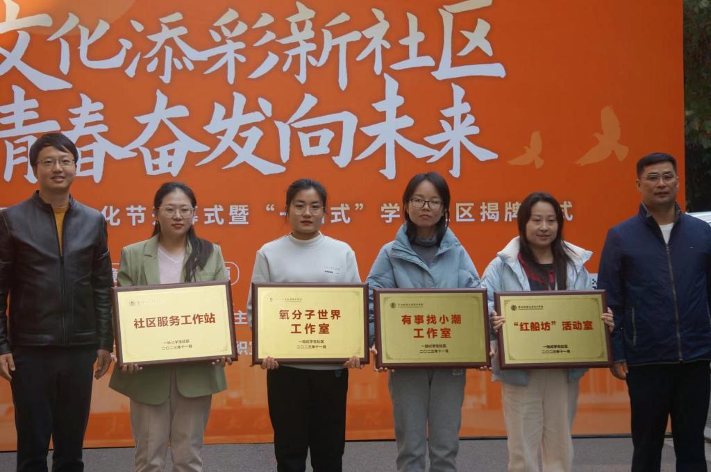 开幕式上,学院党委副书记吴翼泽和学生代表为“一站式”学生社区揭牌。学生工作部负责人介绍社区文化节发展历程及学院“一站式”学生社区建设的相关工作。相关职能部门负责人分别为首批入驻学生社区的工作室授牌。