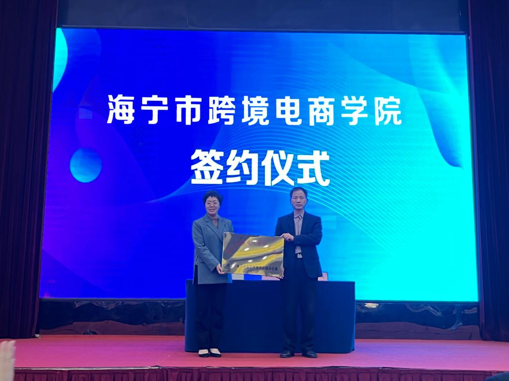 11月13日,由嘉兴市商务局和亚马逊全球开店主办,海宁市商务局、海宁市财政局和海宁市人民政府马桥街道办事处承办,海宁市跨境电子商务公共服务中心执行,中信银行股份有限公司嘉兴分行、嘉兴赢享汇网络科技有限公司、珊瑚跨境和连连国际联合协办的2024亚马逊全球开店卖家启动大会在海洲大饭店举办。学院副院长张伟飚代表学院与海宁市商务局现场签约,正式成立海宁市跨境电商学院。