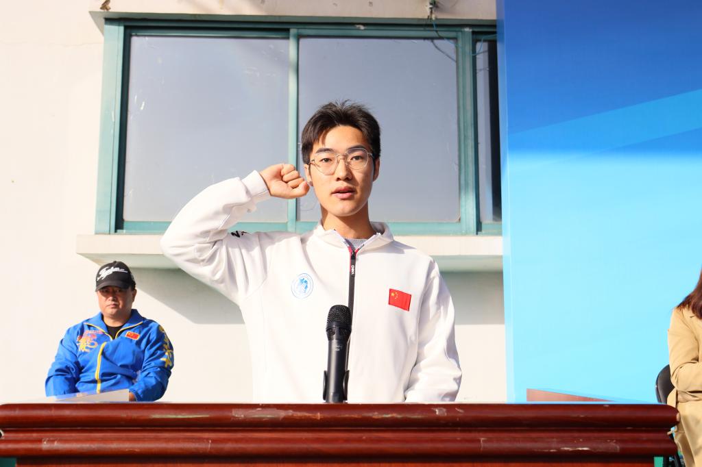 运动员代表曾庆祝、裁判员代表谭金鹰进行庄严宣誓。